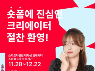 숏폼에 진심인 크리에이터 절찬 환영!내 콘텐츠가 터지는 경험, 스파클 3기에서 시작해 보세요⭐️스파클 3기란?IT 교육 브랜드 ‘스파르타클럽’에서 운영하는 2...